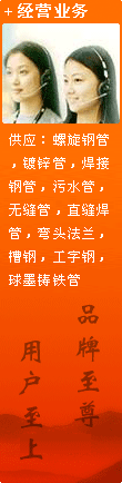 本公司主要生產(chǎn)經(jīng)營:螺旋管,焊接鋼管,無縫管,鍍鋅鋼管,球墨鑄鐵管,直縫鋼管,角鐵,工字鋼,彎頭法蘭等。產(chǎn)品廣泛應(yīng)用于市政工程,供水管道,污水排放,供熱管網(wǎng),煤氣管網(wǎng),煤井礦山,通風(fēng)管道,建筑工程,鋼結(jié)構(gòu),打樁,橋梁,碼頭等領(lǐng)域。同時本公司配有防腐加工廠,專業(yè)對鋼管進行內(nèi)外壁防腐加工,鋼管外壁主要有三油兩布,五油三布,環(huán)氧煤瀝青及環(huán)氧樹脂漆以及各種高分子涂料。鋼管內(nèi)壁主要有無毒飲用水涂料IPN8710-2B,水泥砂漿及各種環(huán)氧涂料。螺旋鋼管材質(zhì)為:Q235 也可按客戶需要自選材質(zhì)。螺旋鋼管的標準依據(jù)為:SY/T5037標準生產(chǎn)和檢驗。定尺長度通常為:12000mm,也可以生產(chǎn)不同長度的管材。